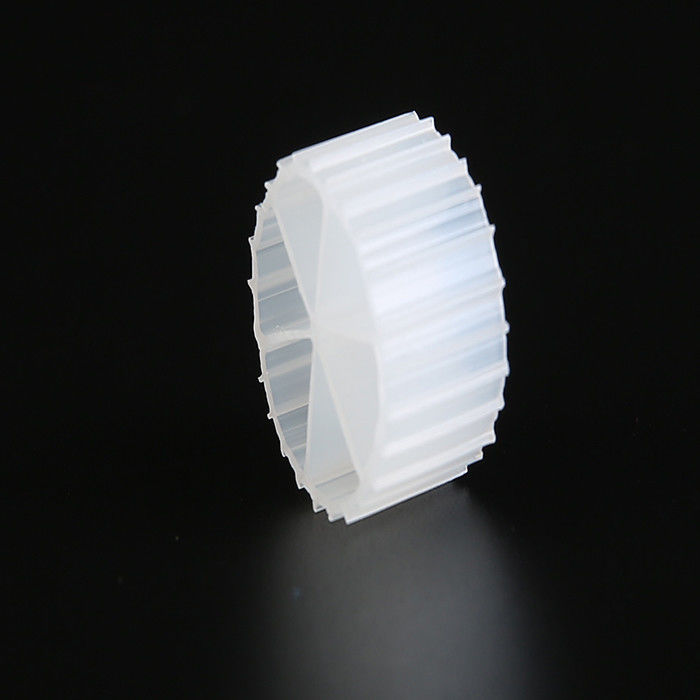 Παρθένο υλικό HDPE MBBR βιομέσα με λευκό χρώμα και μηχανισμό σχηματισμού βιοφίλμ γρήγορου φορέα